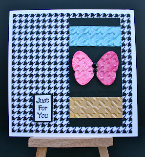 embossed with pearl embossing powder, which toned the colour down, but I really love the effect of the pearl. The butterfly punch is from Stampin up and the sentiment is from Stylish Images.